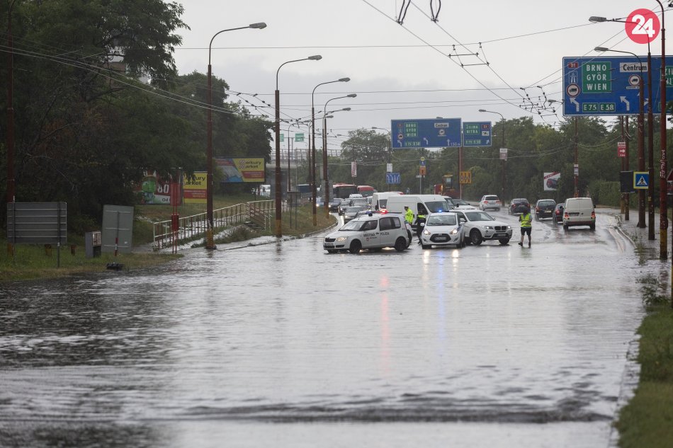 Galéria k článku FOTO + VIDEO: Počasie v Bratislave komplikuje dopravu, niektoré podjazdy zatopilo