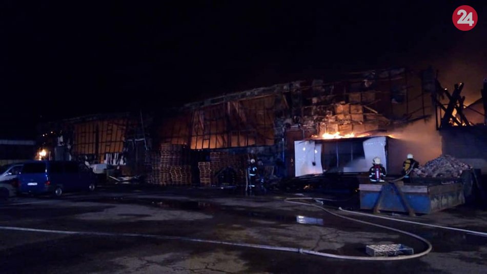 Galéria k článku VIDEO + FOTO: Hasiči v noci bojovali s obrovským požiarom autoservisu v Petržalke