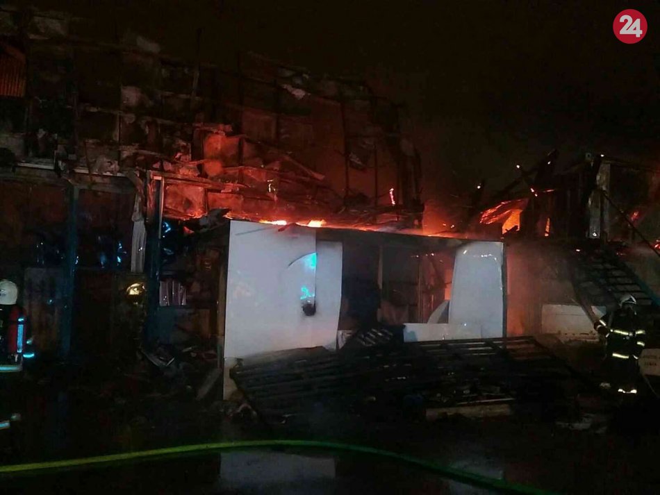 Galéria k článku VIDEO + FOTO: Hasiči v noci bojovali s obrovským požiarom autoservisu v Petržalke