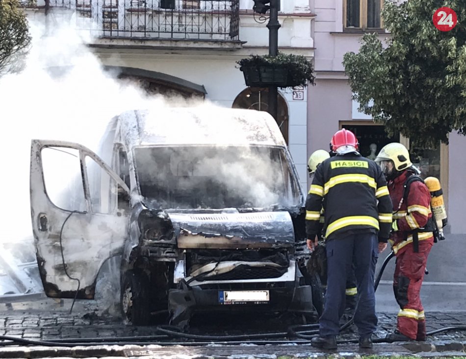 Galéria k článku Požiar na Hlavnej! Hasiči zasahovali pri horiacej dodávke, VIDEO