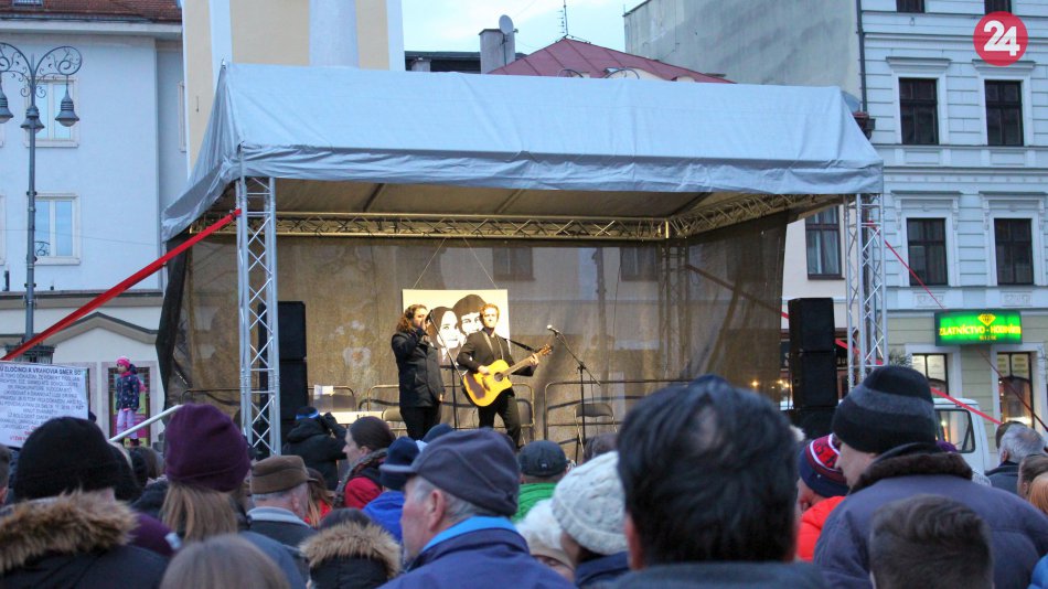 Galéria k článku Bystrické námestie zaplnili ľudia. Prišli so sviečkami, znel aj štrngot kľúčov, VIDEO a FOTO