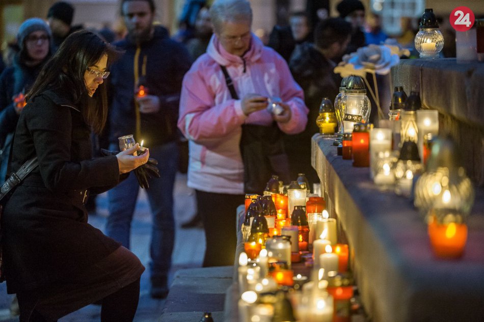 Galéria k článku Bystrické námestie zaplnili ľudia. Prišli so sviečkami, znel aj štrngot kľúčov, VIDEO a FOTO
