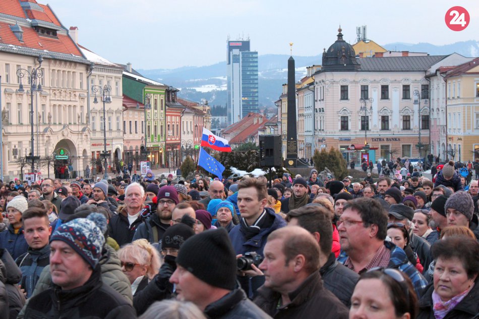 Galéria k článku Bystrické námestie zaplnili ľudia. Prišli so sviečkami, znel aj štrngot kľúčov, VIDEO a FOTO