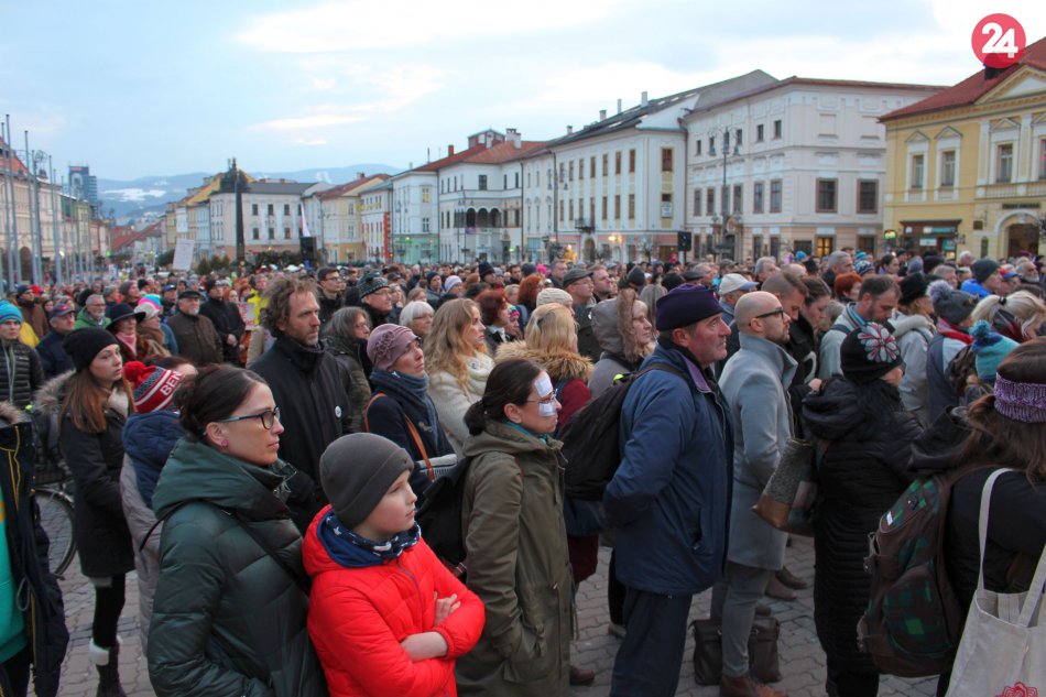 Galéria k článku Bystrické námestie zaplnili ľudia. Prišli so sviečkami, znel aj štrngot kľúčov, VIDEO a FOTO