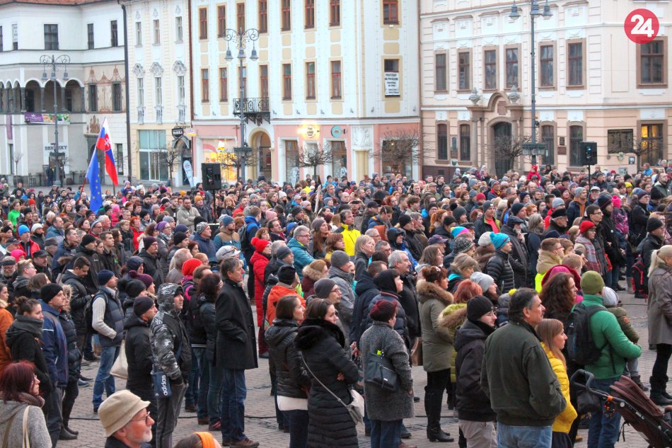 Galéria k článku Bystrické námestie zaplnili ľudia. Prišli so sviečkami, znel aj štrngot kľúčov, VIDEO a FOTO